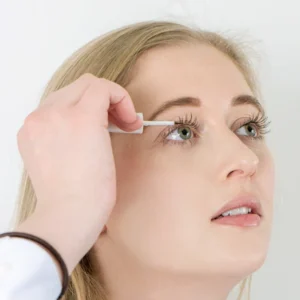 Apply to the base of your eyelashes as if you were drawing an eyeliner.